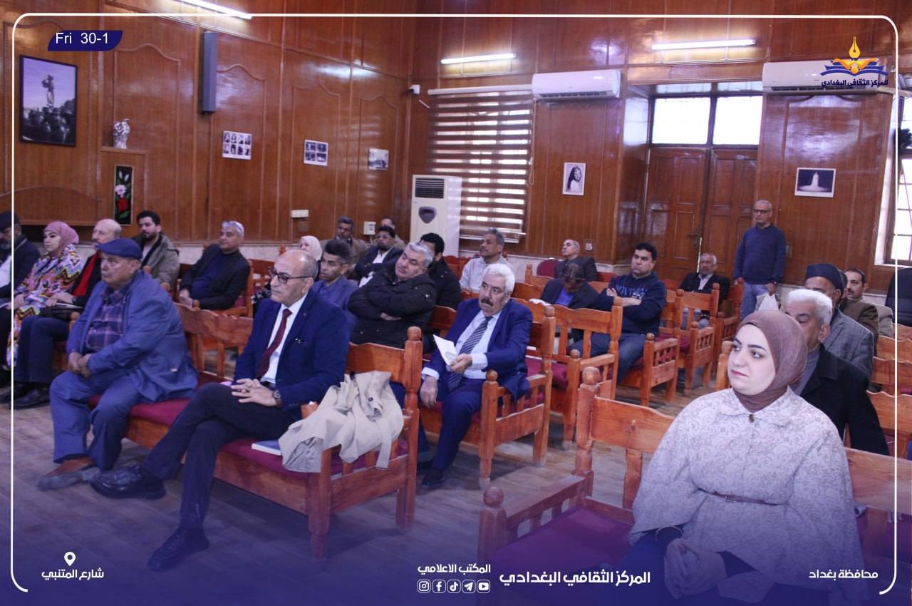 نظم الاتحاد العام للأدباء والكتاب في العراق (نادي القراءة) بالتعاون مع المركز الثقافي البغدادي محاضرة ثقافية فكرية حملت عنوان «أندية القراءة ودورها المعرفي في بغداد» وذلك يوم الجمعة 30 كانون الثاني 2026 على قاعة جواد سليم وبحضور نخبة من الأدباء والباحثين والمهتمين بالشأن الثقافي.